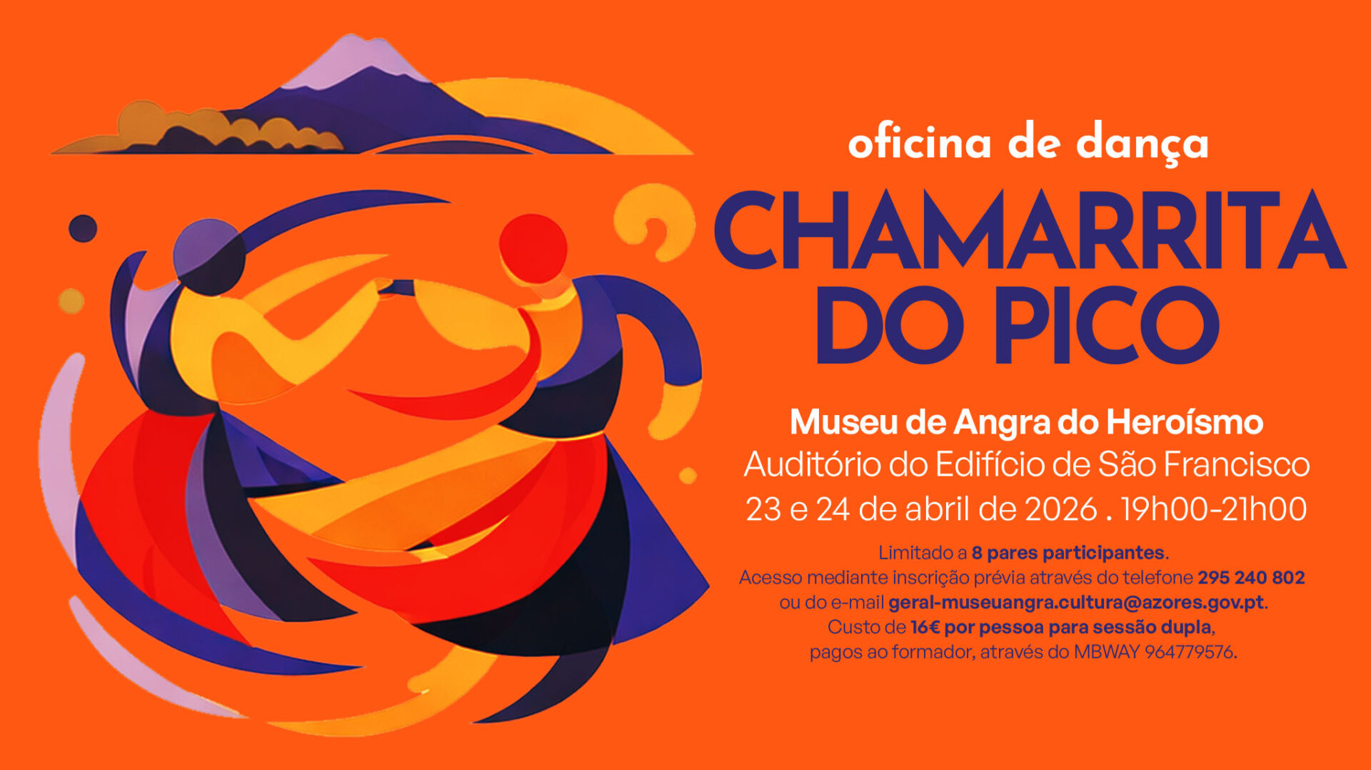 The MAH presents a workshop dedicated to the Chamarrita do Pico, one of the most emblematic expressions of Azorean intangible heritage. In this session, led by José Mariano Matos, renowned for his extensive experience and dedication to preserving this ancestral dance, participants will learn the first steps of a tradition that continues to bring generations together. MUSEUM OF ANGRA DO HEROÍSMO . AUDITORIUM OF THE SÃO FRANCISCO BUILDING . 7:00 PM – 9:00 PM Admission by prior registration via telephone (+351) 295 240 802 or email [email protected] Limited to 8 participants · Fee: €16 per person for a double session, payable to the instructor via MBWAY (+351) 964 779 576
