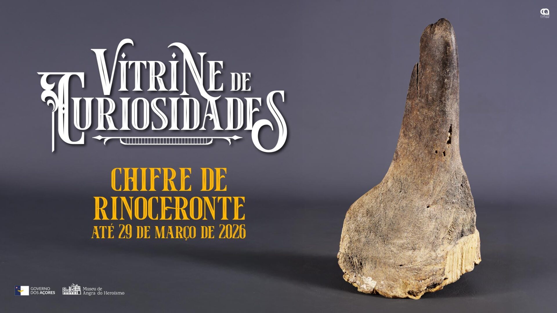 A rubrica deste mês destaca um chifre de rinoceronte, possivelmente proveniente de África ou da Ásia, datado entre os finais do século XIX e o início do século XX. Este integrou a coleção da Escola Industrial e Comercial de Angra do Heroísmo e chega até à atualidade, em depósito na Unidade de Gestão de Ciência e Tecnologia – Naturalia do Museu de Angra do Heroísmo. Hoje apresenta-se não apenas como testemunho de um período histórico de descoberta do mundo natural, mas também como expressão de um debate contemporâneo em torno da conservação do planeta e da sua biodiversidade.