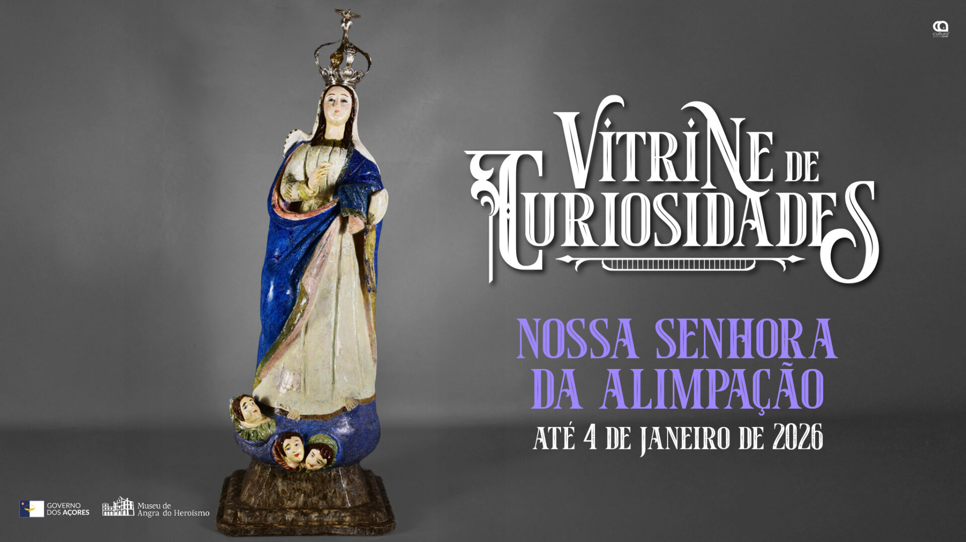 A Vitrine de Curiosidades do mês de dezembro destaca uma imagem religiosa que invoca Nossa Senhora da Alimpação, uma variante regional arcaica de Nossa Senhora da Purificação proveniente de uma casa particular da freguesia das Fontinhas.