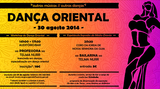 30 de agostoWorkshop de Dança OrientalAuditório/bar, das 14h00 às 17h30Espetáculo "Segredos do Médio Oriente"Coro da Igreja de N.…